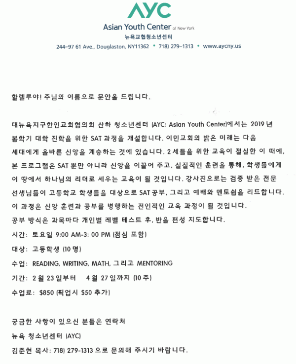 뉴욕교협 청소년센터 봄학기 SAT 클래스 > 행사 등 여러가지 홍보