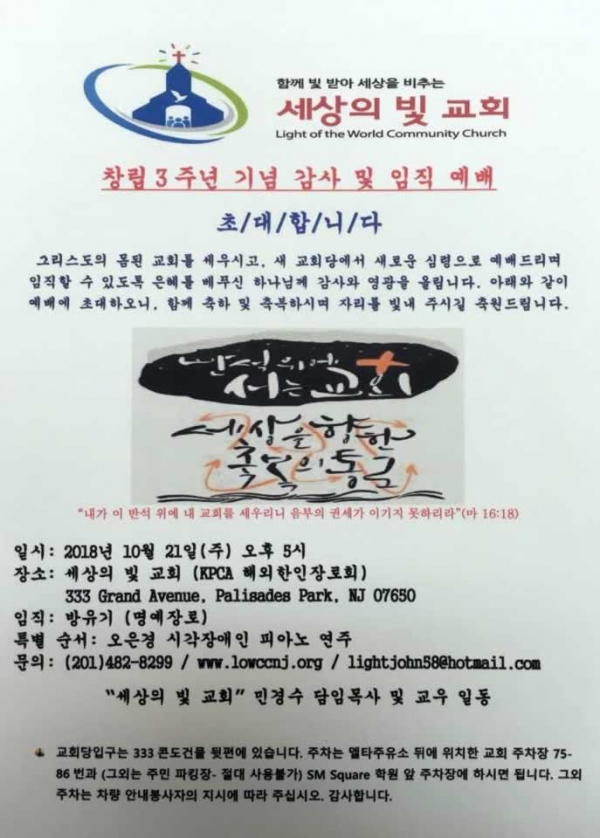 세상의빛교회 창립 3주년 감사 및 임직 예배