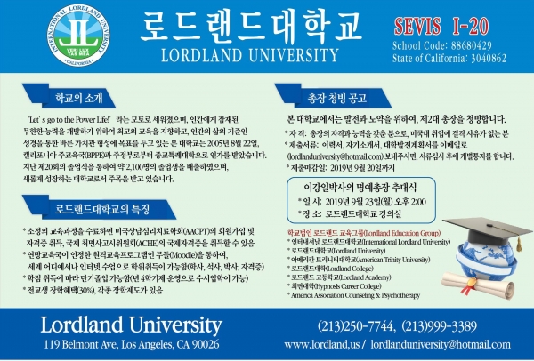 로드랜드대학교(Lordland University, www.lordland.us)에서는 제2대 총장을 모집합니다.