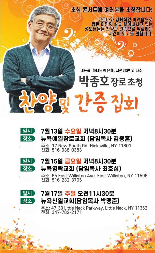 찬양사역자 박종호 장로 초청 찬양간증집회