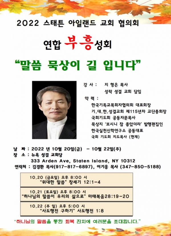 스태튼아일랜드 한인교회협의회에서 연합부흥성회