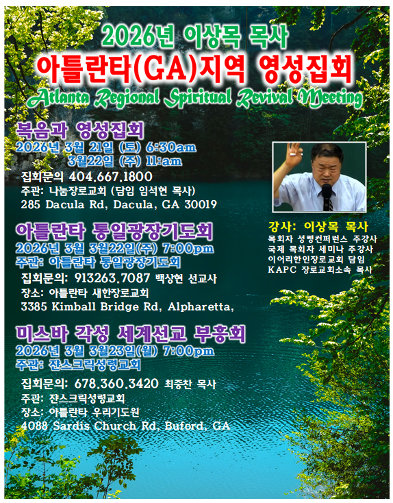 이상목목사 아틀란타지역 영성집회 2026년 3월