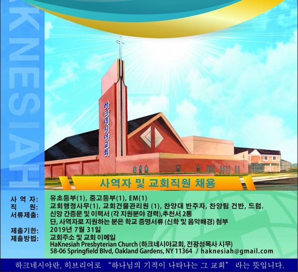 아래와 같이 각 분야의 사역자와 직원을 찾습니다.
