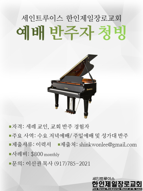 미주리 세인트루이스/ 반주자 구합니다. > 구인