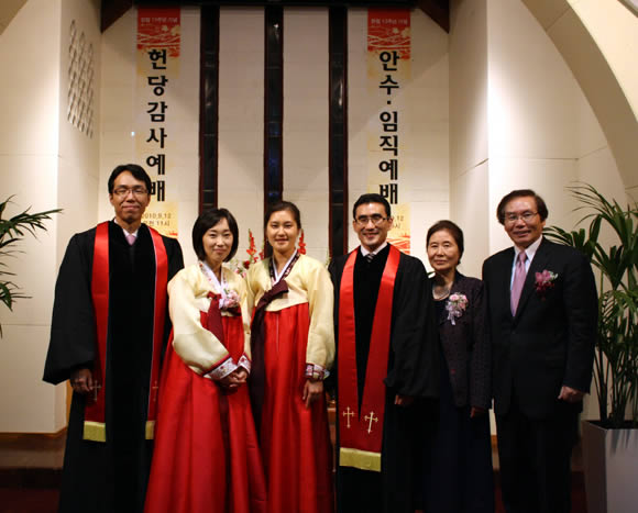 오전 11시에 헌당예배를 드리고 오후 5시에 안수 및 임직예배를 드림으로, 목사 안수를 받으신 분들은 유형선 목사와 윤양필 목사며, 김옥란 집사의 권사임직, 그리고 13명의 집사들이 임직을 받았다.