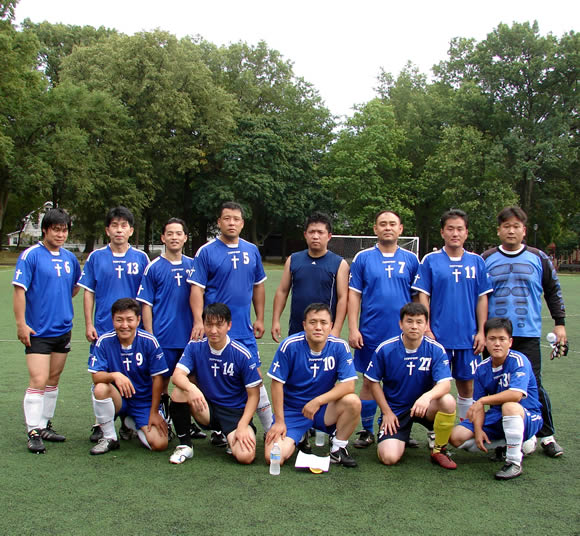 뉴욕목회자축구단(단장 함성은 목사)이 주최하는 다민족 선교와 미주기독교방송국(KCBN) 후원을 위한 미동부지역 축구대회 예선 첫 경기가 7월 25일(주일) 오후 베이사이드 209가에서 열렸다.