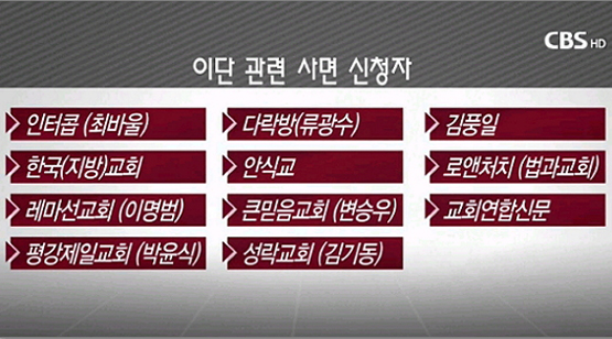 ▲통합 측에 특별사면을 신청한 이단 관련 11개 단체들