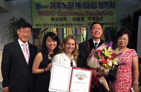 세계한인예수교장로회(WKPC) 가주노회 80회 정기회 및 목사임직식이 8월 23일 화요일 오전 10시 나성열린문교회에서 열려 이광원과 국제임스 등 2명의 목사가 탄생했다. 임직식은 인도 노회장 박경철 목사, 말씀 총회장 이규보 목사, 권면 박헌성 목사, 축사 이철훈 목사 등의 순서로 진행됐다. 특히 국제임스(하준) 목사는 WKPC 총회장을 역임한 뉴저지새생명교회 국남주 목사의 아들로 현재 나성열린문교회 교육목사로 사역하고 있다.