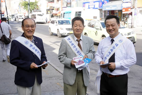대뉴욕지구한인장로연합회(회장 손성대 장로)는 8월 28일(주일) 오후 5시 효신교회에서 열리는 다민족선교대회를 앞두고 25일(목) 오전 8시부터 1시간 30여분동안 플러싱 다운타운에서 적극적인 홍보를 펼쳤다. 10명이 5개 팀으로 나누어 선교대회를 위한 다언어 홍보지를 나누어 주었으며, 특별히 뉴욕전도대학교 학장 허윤준 목사가 참가하여 준비해 온 다민족을 위한 전도지를 함께 나누어 주었다.