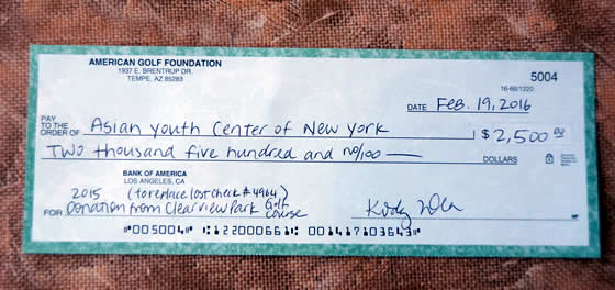 클리뷰 파크 골프장은 지난해 2천여불에 이어 올해에도 뉴욕교협 산하 청소년센터(AYC)에게 2천5백불의 기금을 전달했다. 3월 7일(월) 오전 9시 골프장에서 열린 기금 전달식에서 청소년센터 대표 황영송 목사, 이상호 이사장, 공재규 사무총장과 이사들이 참가했으며 골프장측에 감사패를 증정했다.