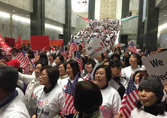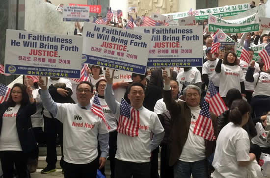 뉴욕교협 회장 이종명 목사와 목사회 회장 김영환 목사 등 여러 교계 목회자들이 참가한 가운데, 2월 29일(월) 알바니 뉴욕주청사앞에서 네일업 한인들과 중국인들이 대규모 항의시위를 벌였다.
