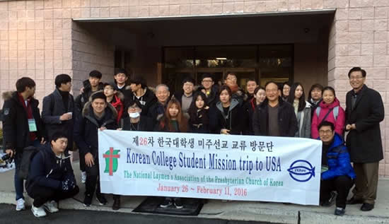 예장 통합 남선교회와 미국장로교 전국 남선교회가 주관하는 26차 한국대학생 미주선교 교환 방문단 일행 21명(단장 최석기 장로)가 1월 26일부터 29일까지 4일간 미동부지역을 방문했다. 이 프로그램은 한국에서 매년 초 미국을 방문하며, 미국측에서는 여름에 한국으로 방문하는 프로그램이다.(문의 201-658-2725)