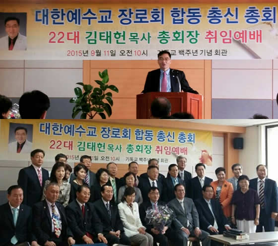 뉴욕출신 목회자인 대한예수교장로회 합동총신총회 22대 총회장 김태헌 목사 취임예배가 9월 11일(금) 오전 10시 기독교100주년기념관에서 열렸다. 강요셉 목사(부총회장)의 사회로 진행된 취임예배에서 박지태 목사(라이즈업코리아운동본부 이사장)이 설교를 했다. 김태헌 총회장의 취임사후 김시중 목사(21세기 지구촌복음화부흥협의회 대표회장)이 권면, 조신일 목사(KDUUSA 총장)과 황동익 목사(뉴욕교협 증경회장)이 답사, 최애현 목사(민족사랑운동본부 공동대표)가 격려사, 박희소 목사(뉴욕교협 증경회장)가 축도를 했다.