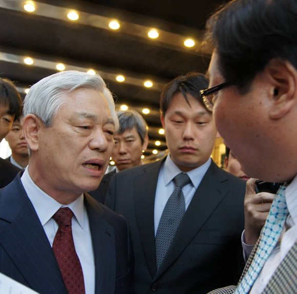 ▲2010년 4월 맨하탄에서 열린 박옥수씨 집회장 앞에서 1차 시위도중 뉴욕교계 목회자들과 입씨름을 벌이는 박옥수씨