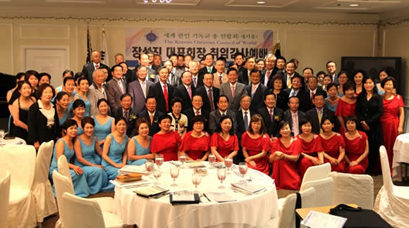 750만 한인 디아스포라의 신앙적 결집체로 닻을 올린 세계한인기독교총연합회(KCCW, 세기총) 제2대 대표회장 시대가 개막되었다. 6월 18일 오전 8시 장석진 대표회장 취임감사 예배가 크리스천 위클리 주관으로 LA 코리아 타운에 있는 제이제이 그랜드 호텔에서 열렸다. 이날 LA 한인 교계 단체장과 한국, 뉴욕 등지에서 참가한 150여명의 참가자들은 신임 대표회장 취임과 더불어 세기총의 앞날에 하나님의 은혜와 동행하심이 있기를 기원했다.