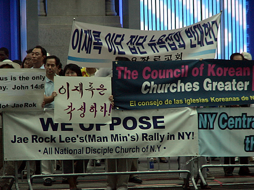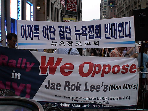 범기독교이단대책협의회(상임의장 김남수 목사)는 200여명이 모인 가운데 이재록씨 뉴욕집회를 반대하는 시위를 2006년 7월 27일(목) 오후 6시 부터 9시까지 맨하탄 7 Ave 선상 31St 과 32St 사이에서 열었다.