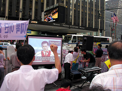 첫날 뉴욕장로교회 성도들이 중심이 되어 3시간동안 진행된 시위에는 구호선창, 찬양, 기도, 선언문 낭독등으로 진행된다.