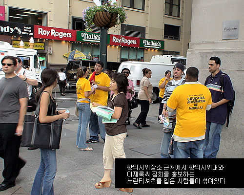 이날 모임은 김남수 목사, 스티브황 목사, 정익수 목사, 이영희 목사, 이희선 목사등이 스피커를 통해 인도했다. 이날의 하이라이트는 순복음뉴욕교회 김홍제 안수집사의 스페니쉬 발언. 유창한 스페니쉬를 구사하는 김 집사는 영성까지 뒷받침되어 설득력이 있었다. 시위는 정익수 목사와 김남수 목사의 한국어 영어 축도로 막을 내렸다.
