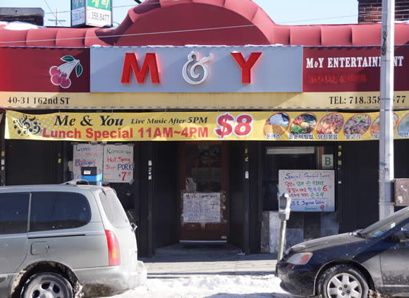 'M&Y 크리스찬 카페'는 오전 7시30분 부터 아침식사가 되며 각 메뉴 3-5불이다. 커피와 토스트는 3불이며, 해장국/설렁탕/육개장은 각 5불이다. 오전 11시부터 오후 4시까지 점심식사(돈까스. 함박스테이크, 떡만두국, 돌솣비빔밥)는 7-8불이다. 주소는 40-31 162st Flushing NY 11354이며, 162가 굴다리 옆 상하이 짬뽕 바로 옆집이다. 전화번호 631-413-7852.
