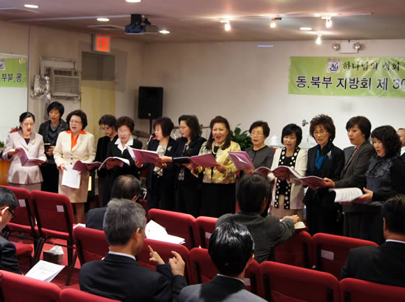 하나님의 성회(A/G) 한국총회 동북부지방회 30차 정기총회가 4월 4일 오전 러브미션교회(신인화 목사)에서 열렸다. 1부예배는 인도 김영철 목사(부회장), 기도 나명자 목사, 성경봉독 김희숙 전도사, 특별찬양 여성교역자 일동, 말씀 김남수 목사, 헌금기도 김명옥 목사, 광고 강봉규 목사(총무), 축도 정영효 목사로 진행됐다.