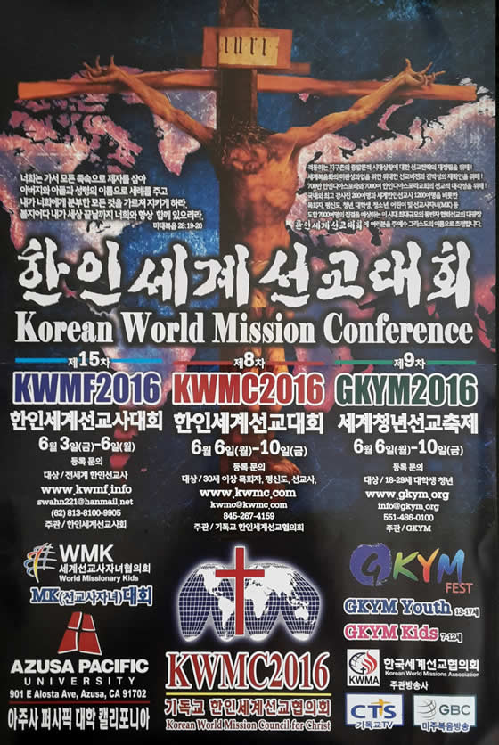 올림픽 처럼 4년마다 열리며 한국교회와 디아스포라 한인교회의 선교에 많은 영향을 미친 한인세계선교대회 일정이 나왔다. 1988년 1차 대회부터 7차 대회까지는 시카고 휫튼대학에서 대회가 열렸으나, 내년 6월에 열리는 8차 대회는 방문의 편의성 등을 고려하여 캘리포니아 아주사퍼시픽대학에서 열린다.