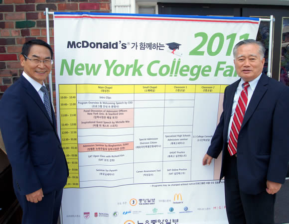 뉴욕중앙일보가 주최하고 맥도널드가 스폰스하는 교육박람회가 9월 3일 오전 10시부터 오후 4시까지 퀸즈중앙장로교회(안창의 목사)에서 열렸다. 교육박람회는 한인 2세들의 대학입학을 위한 장보를 제공하고 있다. 박람회에는 입학사정관으로 부터의 다양한 최신 입시정보와 더불어 한국의 유명 사립대와 미국 대학까지 30여개 대학이 참가, 현장에서 대학투어를 할 수 있다. 특히 이번 박람회에는 롤모델로 LPGA 미셸 위를 초청해 그의 성공 스토리를 나누었다.