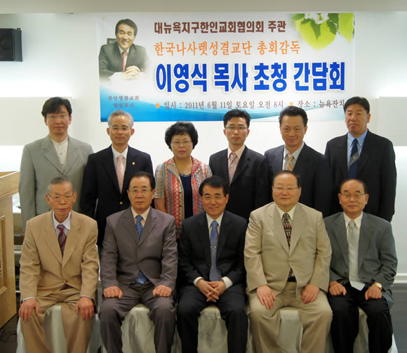 뉴욕교협(회장 김원기 목사)는 6월 11일(토) 오전 뉴욕잔치에서 한국나사렛성결교단 총회감독 이영식 목사(분당영광교회)를 초청하여 간담회를 열었다. 이자리에는 교협임원들과 나사렛교단 목사들이 참가했다. 특히 나사렛교단 목사로 교협회장을 지낸 최웅렬 목사, 이병홍 목사, 신현택 목사등이 참가했다. 이 목사는 사람과 일에 눈치를 보는 것이 아니라 하나님을 중심으로 살아야 한다고 강조했다.