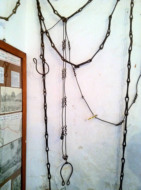 ▲동부 아프리카 내륙에서 잡아온 Slave 들을 Bagamoyo 까지 끌고 왔던 쇠사슬, 쇠 목거리, 쇠 발고리, 쇠 Chain