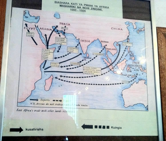 ▲바가모요 노예 경매시장, 잔지바르 섬으로 노예들을 이동시키던 해변 바닷가. 경매를 통하여, 배로 Zazibar (잔지바르) 섬으로 이동, 아랍 상인들에 의하여 에집트, 중동, 사우디.아라비아, 이란, 인도, 마카우등으로 팔려갔다.