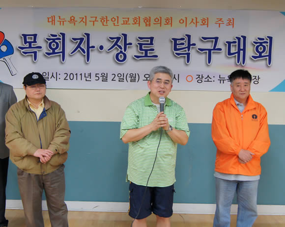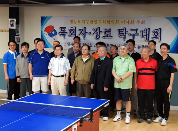 뉴욕교협 이사회(아사장 황규복 장로)는 목회자와 평신도의 연합을 위해 5월 2일(월) 오전 11시 뉴욕탁구장에서 목사와 장로(혹은 평신도대표)가 한 팀이 되어 경기하는 복식게임 탁구대회를 개최했다.