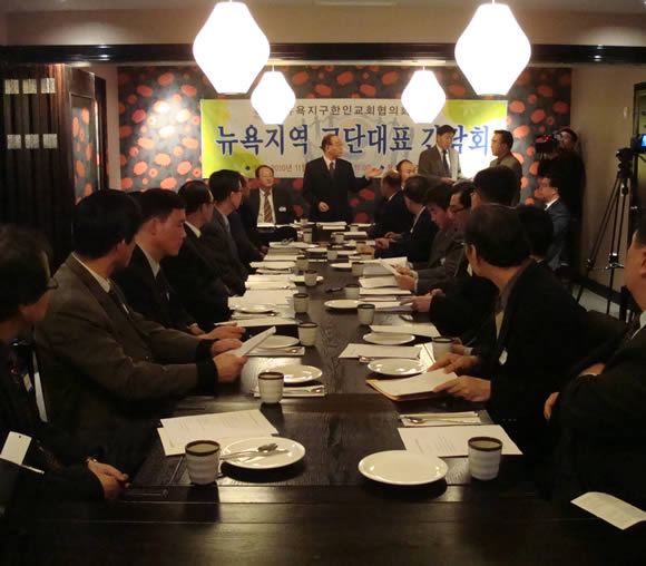 뉴욕교협(회장 김원기 목사)는 11월 30일(화) 오전 11시 아리수 연회장에서 각 교단대표를 초청하여 간담회를 가졌다. 회장 김원기 목사는 3차에 걸쳐 교단대표를 초청하여 뉴욕교계의 문제와 사역을 같이 의논하려고 한다며, 이는 교단의 전폭적 지원이 없이는 교협이 반쪽자리 기능 밖에 할수 없기 때문이라고 말했다.