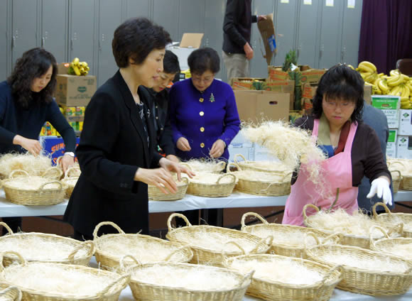 퀸즈장로교회(장영춘 목사)는 10년째 연말마다 사랑의 바구니를 만들어 사랑이 필요한 곳에 따뜻한 사랑을 전달하고 있다. 12월 9일(목) 오전 남녀 선교회들이 모여 150여개의 사랑의 바구니를 만들었다.