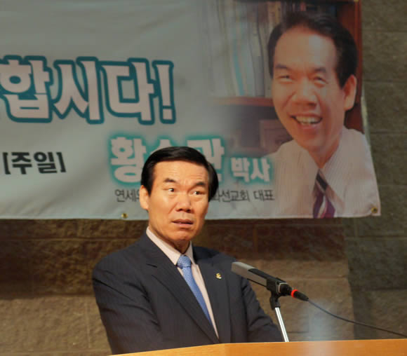 황수관 장로 초청 신바람집회가 9월 24일(금)부터 3일간 퀸즈중앙장로교회(안창의목사)에서 열렸다. 황 장로는 강남중앙교회 장로로 연세대학교 의대 교수이며 신바람 기독문화선교회 대표로 활동하고 있다.