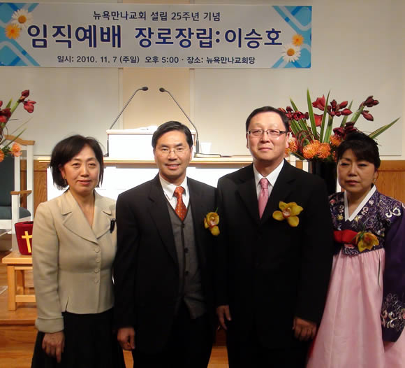 뉴욕만나교회(정관호 목사)는 예배당 건축을 놓고 5년반 동안 주민들과 어려움을 겪어오다 예배당을 건축하고 지난해 11월 교회당 봉헌 및 임직예배를 드렸다. 한해가 지나고 11월 7일(주일) 오후 5시 교회설립 25주년 및 임직예배가 열렸다.